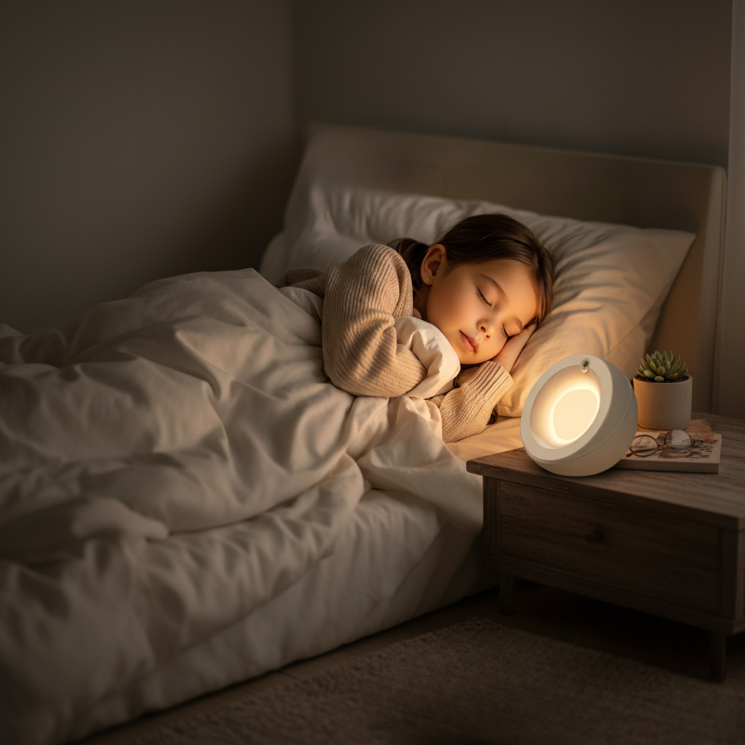 - Morning: Gentle wake-up at 50% brightness
